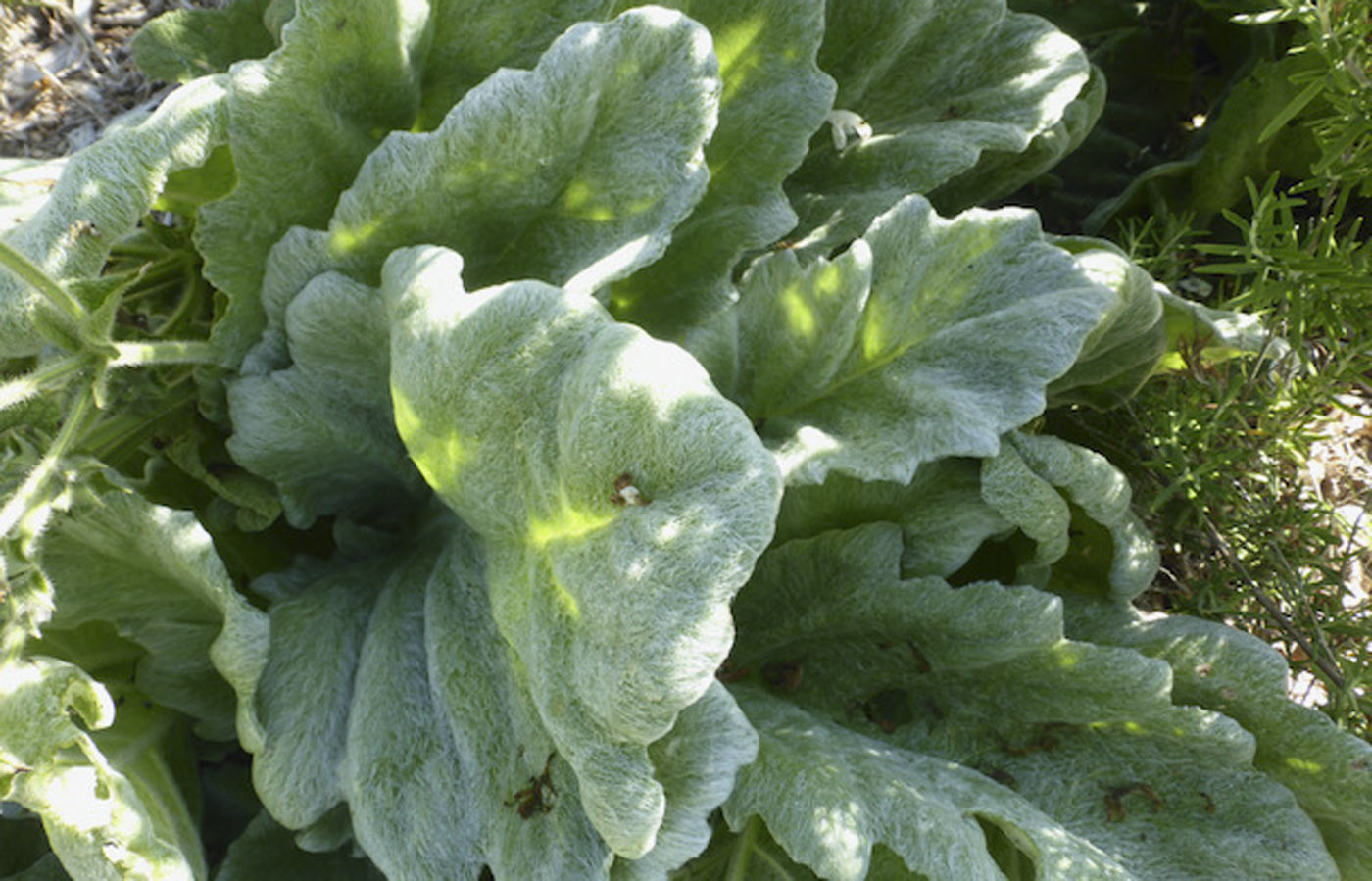 In the area around the Roseline Sturdy Amphitheatre, horticulturist Tim Chipchar has been working to introduce a range of long-blooming herbaceous perennials. The unusual sunflower relative, Catananche caerulea, which is known as Cupid’s dart because of its employment in love potions of yore, produces a long sequence of gorgeous, bright blue daisies from chaffy bronze buds atop swaying, wire-like stalks. There is a small patch at the top of the hill above the amphitheatre’s William Pye water feature, “Hypanthium.” Salvia argentea (silver sage) produces sprays of white two-lipped flowers (close inspection reveals tiny purple hairs on the flower’s upper lip), though silver sage is more often noted for its spectacularly large, rumply, silver-hairy evergreen leaves. This species can be found next to the path in the bed with a view across to the European section of the E.H. Lohbrunner Alpine Garden. The Grecian foxglove, Digitalis laevigata subsp. laevigata is located on the opposite side of the path. An unusual foxglove for its hairless stems and leaves (laevigata means polished, not rough), D. laevigata produces upright stems of golden-yellow flowers that do not open until mid-summer. A close look at the tubular flowers shows a white, tongue-like lower lip that folds down when the flowers are at anthesis (ready for pollinators). Salvia candelabrum is an evergreen subshrub that, like the majority of Salvia species, produces its flowers in the heat of summer at UBC. The candelabra sage distinguishes itself by its violet-purple flowers, produced in compact whorls (technically, false whorls as the flowers are actually borne in paired clusters) on tall stalks. The leaves look like those of the culinary sage (S. officinalis), but are considerably larger. Our plants are located roughly opposite the recently installed, Deborah Butterfield (horse) sculpture “Columbia.” Two hollyhocks should be visible in the same area. Alcea rugosa, the yellow, or rough-leaved hollyhock, produces masses of soft-yellow flowers on tall, upright stems, while the hemp-leaf hollyhock, or palm-leaf marshmallow, Althaea cannabina, churns out a near continuous supply of 2-cm-diameter pink flowers on slender green stalks. Hollyhocks of a more conventional nature—i.e., the common hollyhock, Alcea rosea—can be found elsewhere in the Garden, but especially at the Front Entrance gate, where the towering stalks of white-centred, cream, rose, pink, red or purple floral disks make a colourful summer welcome to the Garden.