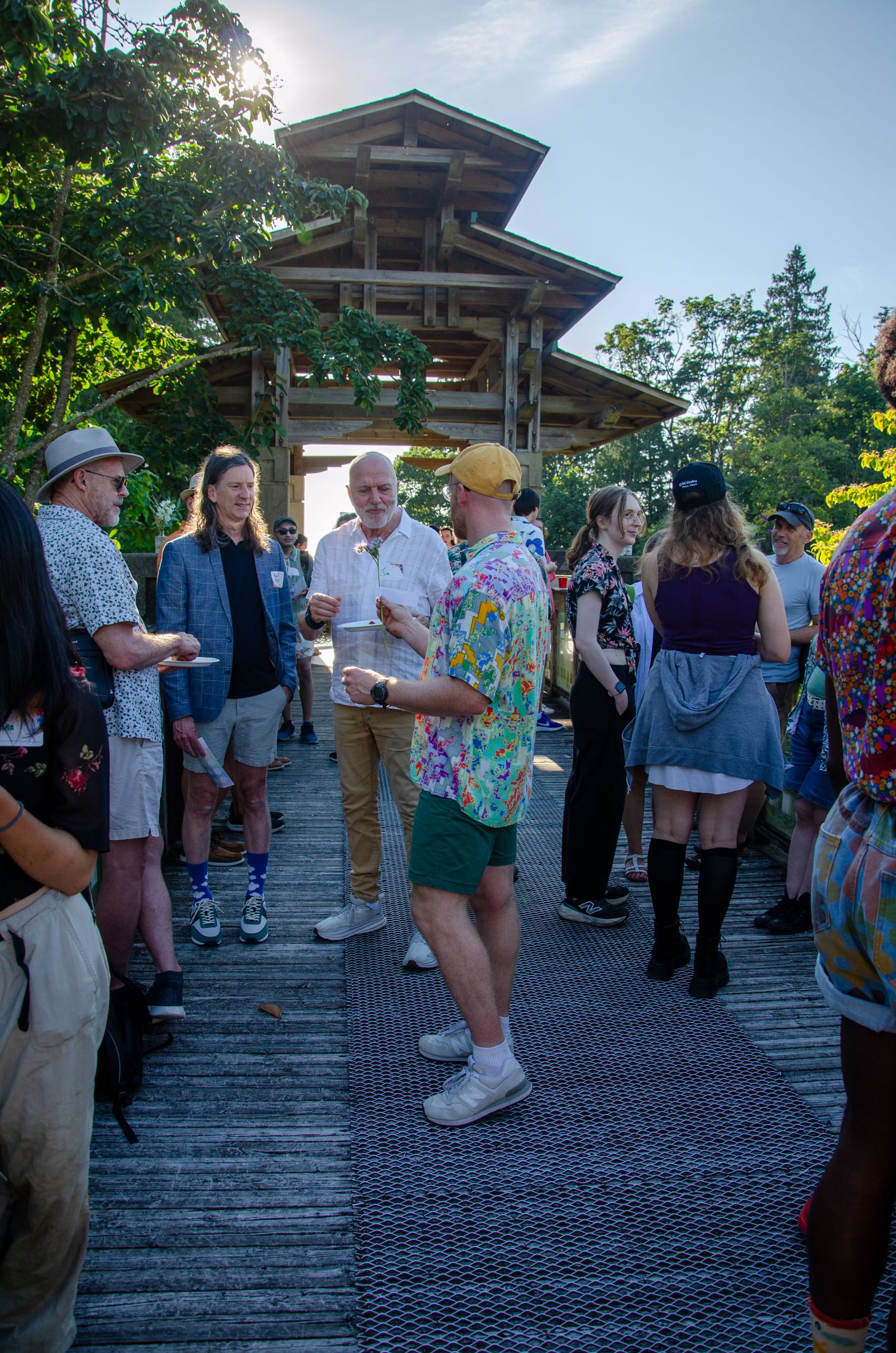 Throughout the evening, our incredible volunteers and horticultural team led these sassy stations. We were also joined by local creators and vendors who shared their ceramic pieces, jewelry, prints, and other works of art, adding even more colour and creativity to the evening. The Greenheart TreeWalk remained a popular destination and offered a shared moment of awe among the treetops, where guests were able to spot a Barred Owl.