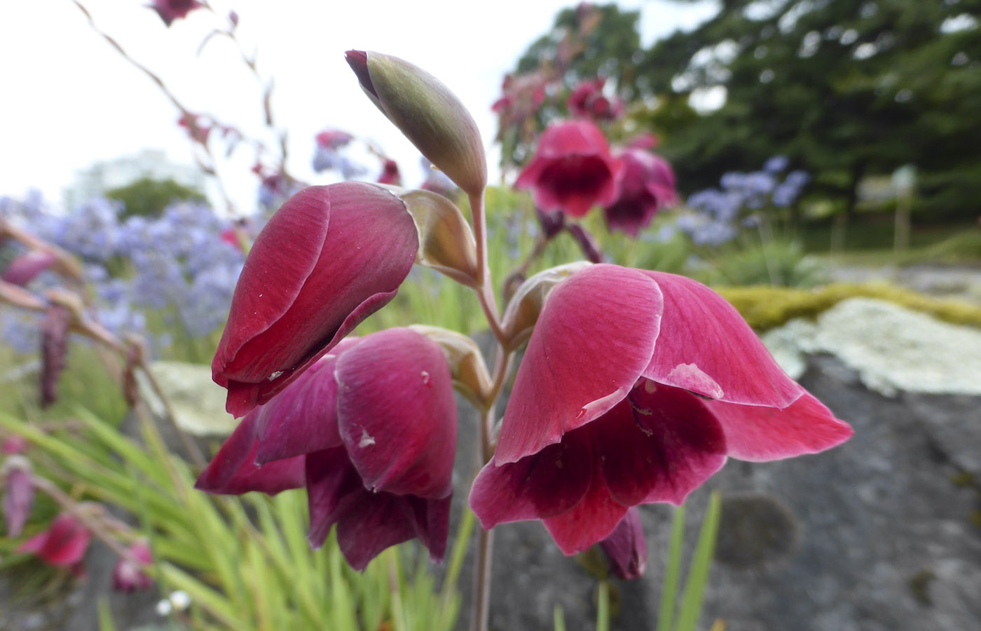 E. H. Lohbrunner Alpine Garden: One of North America’s largest alpine rock gardens, the E. H. Lohbrunner Alpine Garden was constructed using 2,000 tonnes of pyroxene andesite boulders imported from the BC Interior in the early 1970s. Many of the plants in the Alpine Garden were donated by Dr. Ed Lohbrunner (1904-1986), a Victoria-area nurseryman and internationally known plantsman who is remembered not only for the wide range of exotic plants he grew and sold and his pivotal role in the introduction of many Pacific Northwest native plants into cultivation, but also for his generosity and philanthropy. Plants in flower in the Alpine Garden are far too numerous to list; however, there are several July stand-outs, including: Eryngium eburneum, Lobelia tupa and Verbena rigida (South America), Gladiolus ‘Ruby’, Berkheya purpurea, and Phygelius rectus (Africa), Epilobium canum, Opuntia fragilis and Yucca constricta (North America), and Ceratostigma willmottianum, Hylotelephium telephium cultivars and Origanum ‘Nymphenburg’ (Asia).
