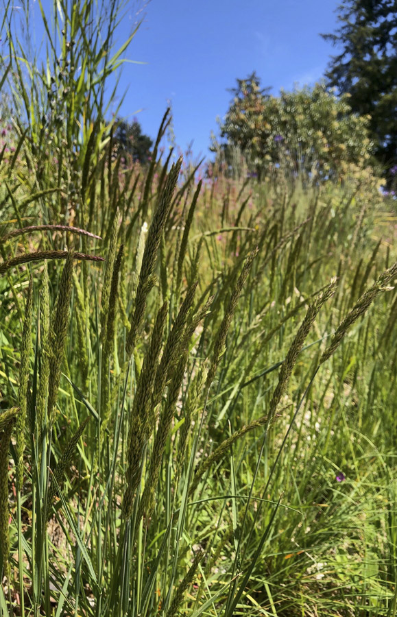Flowering in grasses is seldom remarked upon, but all around this area are carpets of the beautiful June grass, Koeleria macrantha, with its delicate plume-like flower stalks. June grass is native to prairie habitats across North America and Eurasia and is an important component in the recent renovation here. Ben Stormes, curator of North American Gardens has spent a number of years with Garden staff clearing the Garry Oak Meadow Garden of invasive European grasses and weeds and replacing them with local Garry oak ecosystem natives. What you see today is the result of their hard work.
