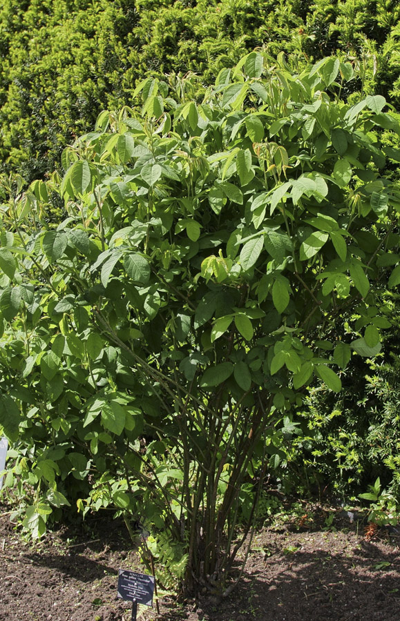 There are other amazing plants in the Carolinian Forest. Bigleaf magnolia, Magnolia macrophylla, for example, can grow 30 m tall Both its leaves and flowers are the largest of all magnolias. Although our trees are still small, they are much admired for their thick, sparse branching, huge white-backed leaves and salad bowl-sized white flowers that appear in June and July. At the far end of the Carolinian Forest in Marshall Grove is an ever-widening thicket of the eastern North American swamp rose, Rosa palustris. The single pink flowers of this suckering, shrubby rose have a lovely fruity aroma.