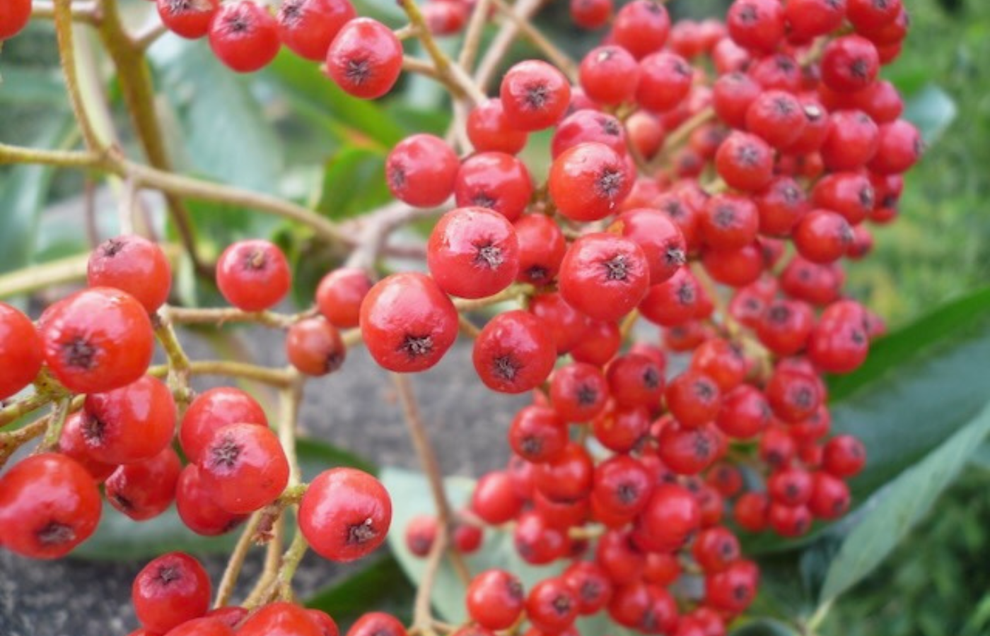 As noted in last month’s blog, pome-fruited plants other than apples are common in the Botanical Garden. Sorbus species—the mountain ashes—which are often very good for colourful fruits, are also having a good year. The pomes of Sorbus splendens (Maries Trail at Farges Trail), a magnificent mountain ash species from Yunnan, China, are now, finally, a brilliant scarlet, but will be thieved in short order by hungry birds. The Asian whitebeams, too, are starting to show themselves. Hemsley’s Asian whitebeam, Micromeles hemsleyi, a species rated handsome for its large, silver-backed leaves, is also known for its russeted yellow pomes. One of the largest species in the genus, our specimen on Maries Trail near Staunton Trail—now close to 15 m tall—is exuberantly covered with fruit.